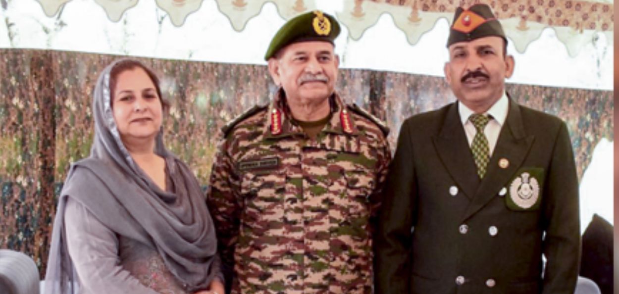 लष्करप्रमुख जनरल उपेंद्र द्विवेदी त्यांचे सहकारी सेवानिवृत्त मानद कॅप्टन सुभेदार परवेझ अहमद यांच्या परिवाराची भेट घेताना