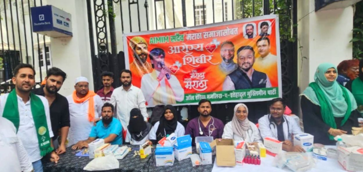 मराठा आंदोलकांच्या आरोग्याची काळजी दर्शवत मुंबई एमआयएमचे प्रदेशाध्यक्ष फारूक शाब्दी यांच्या वतीने मोफत आरोग्यशिबीर राबवण्यात आले. या शिबिरात रक्तदाब, मधुमेह, हृदयविकार तपासणीसह सर्वसामान्य आरोग्य तपासण्या मोफत केल्या गेल्या.